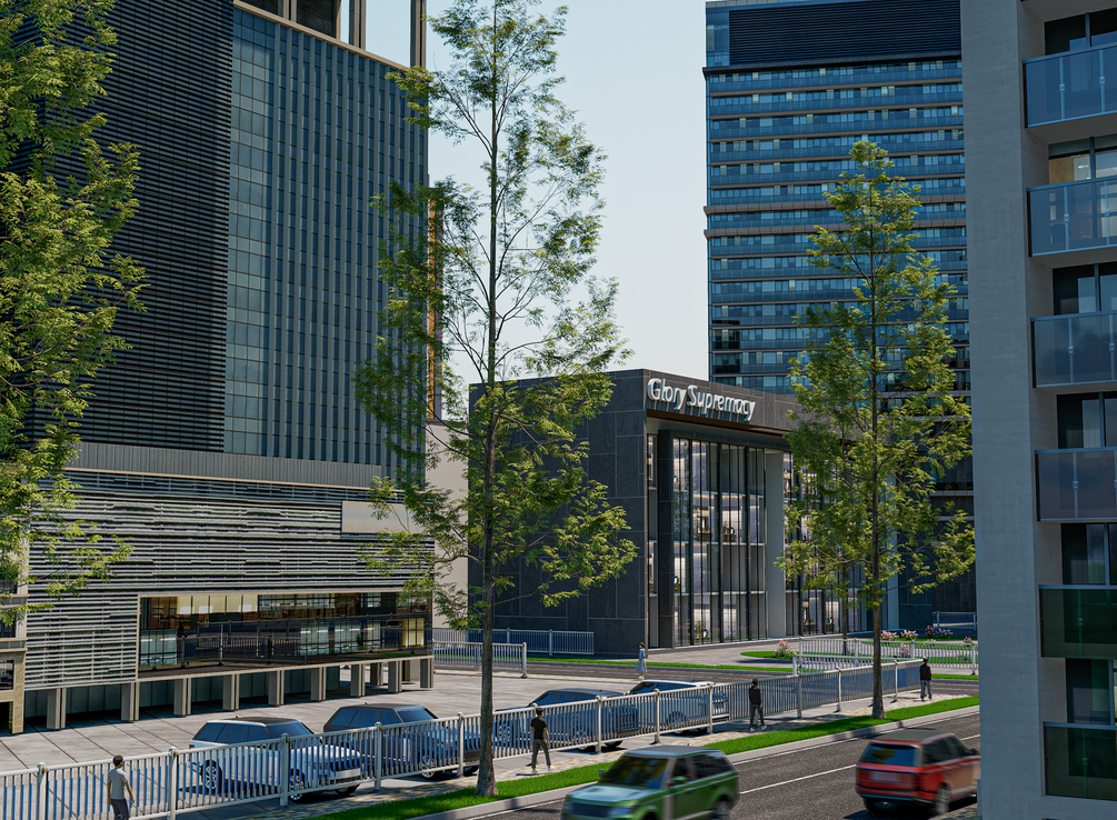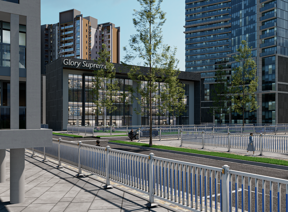 A detailed and fully textured D5 Render scene of a modern town. Includes Render videos, lighting setup, Post production and sample renders. Perfect for learning or starting your own design visualization.